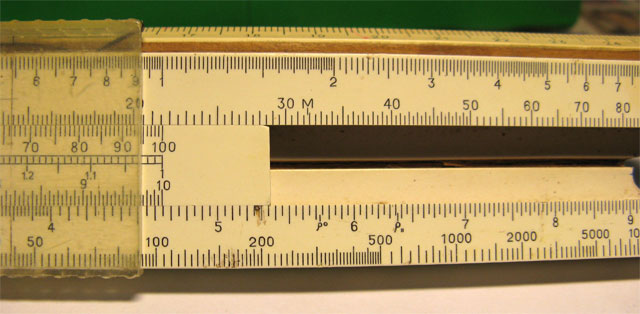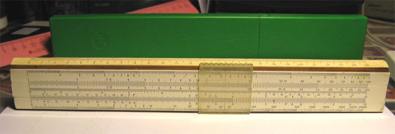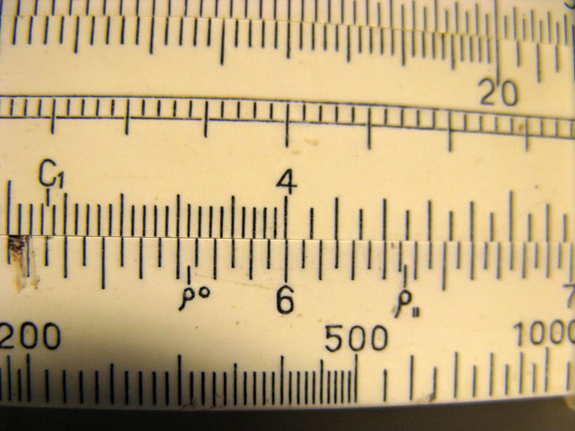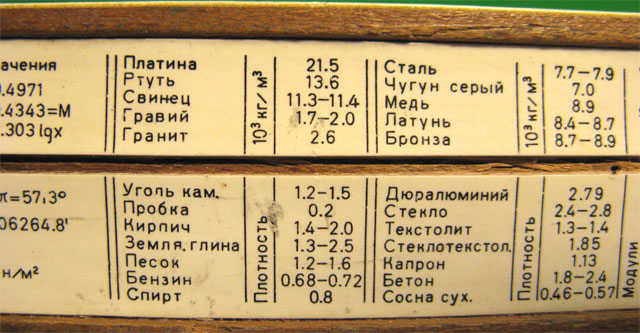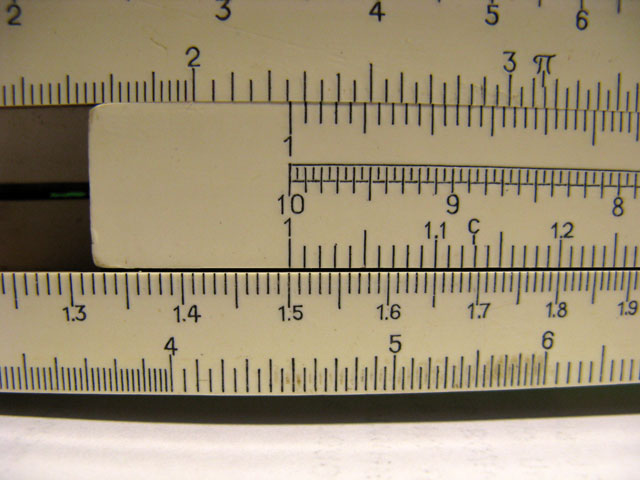 Логарифмическая линейка - интересное изобретение, широко использовалась до изобретения калькуляторов. Она, судя по названию, может высчитывать логарифмы, а ещё умножать/делить, складывать и отнимать. Находить синусы и косинусы, и ещё много другого. Внешний вид линейки: ![]() Шкала ближе: ![]() Средняя шкала линейки двигается в стороны и даже вытаскивается из линейки, т.к. с её другой стороны нанесены другие шкалы. ![]() На задней стороне линейки есть таблица с разными данными про материалы и всякие формулы. ![]() Изготовлена линейка в 1978 году. ![]() А теперь попробуем что-то высчитать на этой линейке, например, умножим числа 1,5 на 4. Чтобы это сделать, устанавливаем отметку "1" на средней линейке, напротив отметки 1,5 на нижней (третей) шкале линейки. ![]() А теперь ищем на этой же средней линейке цифру "4", это то число, на которое мы умножаем. Когда мы найдём "4", то увидим, что деление "4" стоит как раз напротив деления "6" на нижней (третей) шкале. А число "6" - это как раз ответ (1,5*6). ![]() |
